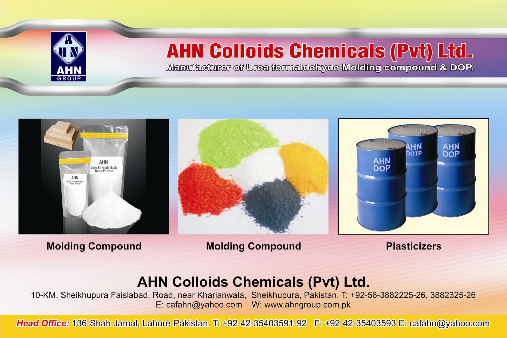 Established an Industrial Unit in 1992 for the manufacturing of Urea Formaldehyde molding compound with the collaboration of UK based company ABBEY Thermoset with the plant capcity of 10,000M/Tons per year. Urea molding compound is used in Table wear Crockery and Electric Switch and accessories/ In 1996 company has set D.O.P (Di-Octyle Phthalate) DOTp Plasticizer Plant Capacity of 10,000M/Tons per year, which is the basic raw material for plastic industry. By virtue of hard working and 25 years of experience in manufacturing industry. AHN Group o Industry has established strong hold in the local market and export oriented industry.